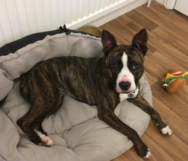 Staffie cross Bella is very loving but can be frightened of other dogs so is looking for a home with experienced owners who know how to work with a reactive dog. She’s very clever and well-behaved in the home but would like a home with no other pets. She loves human company the most and is a real lap-dog; enjoying strokes and lots of fuss. She’s very playful and loves to play fetch and go on long walks. For more about Bella please contact RSPCA Northamptonshire branch by calling 01604 881317.