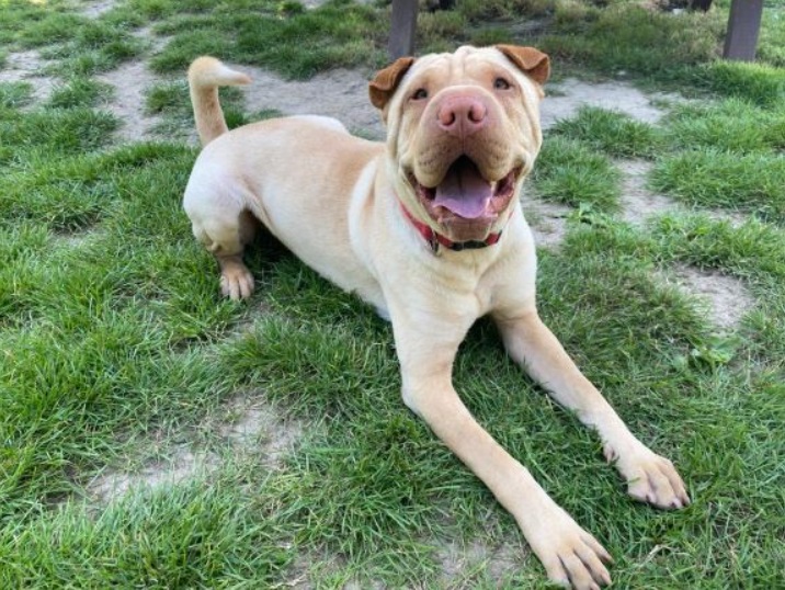 Bruce, a four-year-old shar-pei, has put on nearly 10 kg since coming to RSPCA Millbrook Animal Centre in Surrey in October last year. He was emaciated and had skin lesions, but is now a much happier, healthy dog.