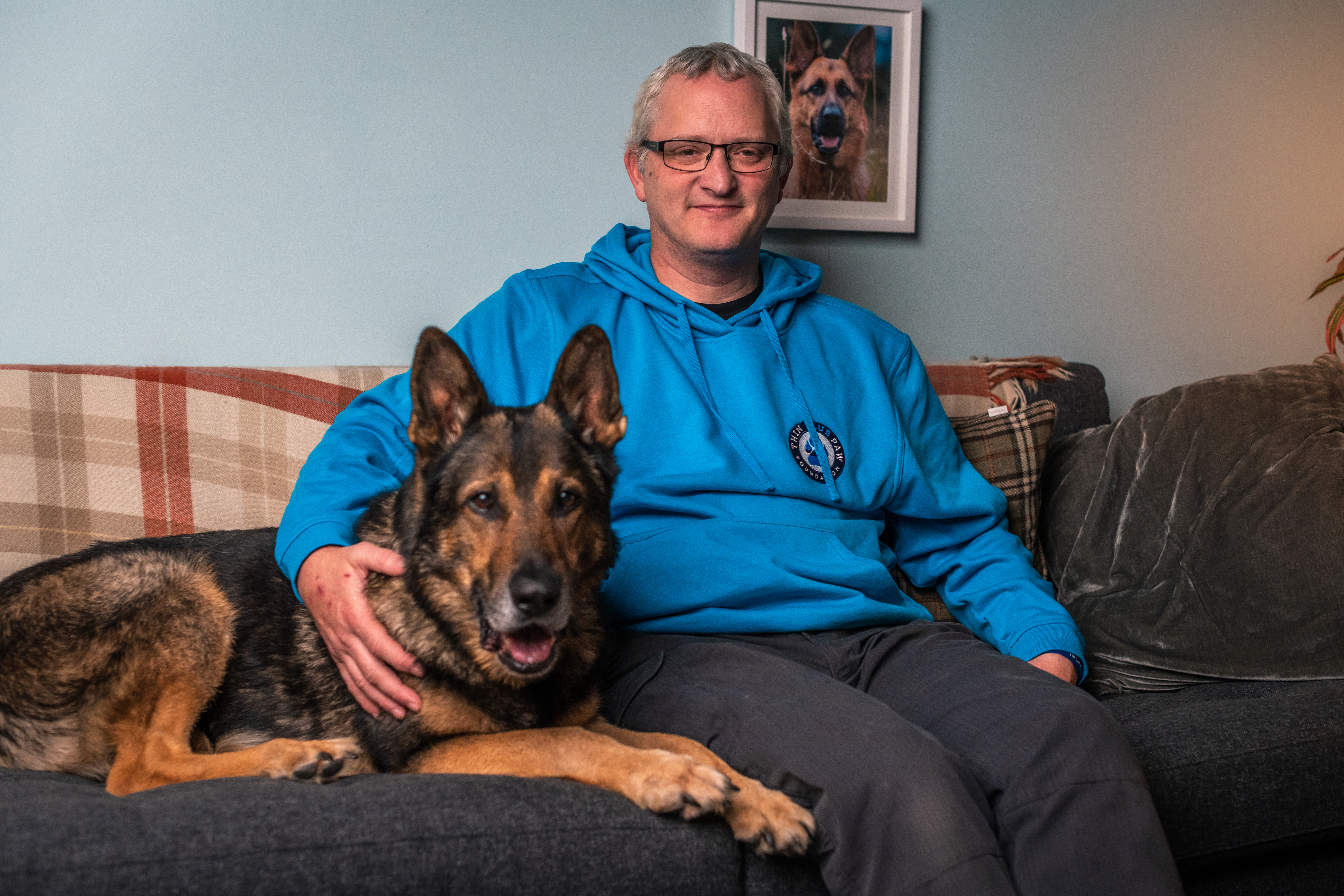 Finn saved Dave Wardell's life when they were attacked by a criminal with a knife. Dave set up The Thin Blue Paw Foundation with Gemma Wardell and Kieran Stanbridge to help retired police dog live happy, healthy lives.