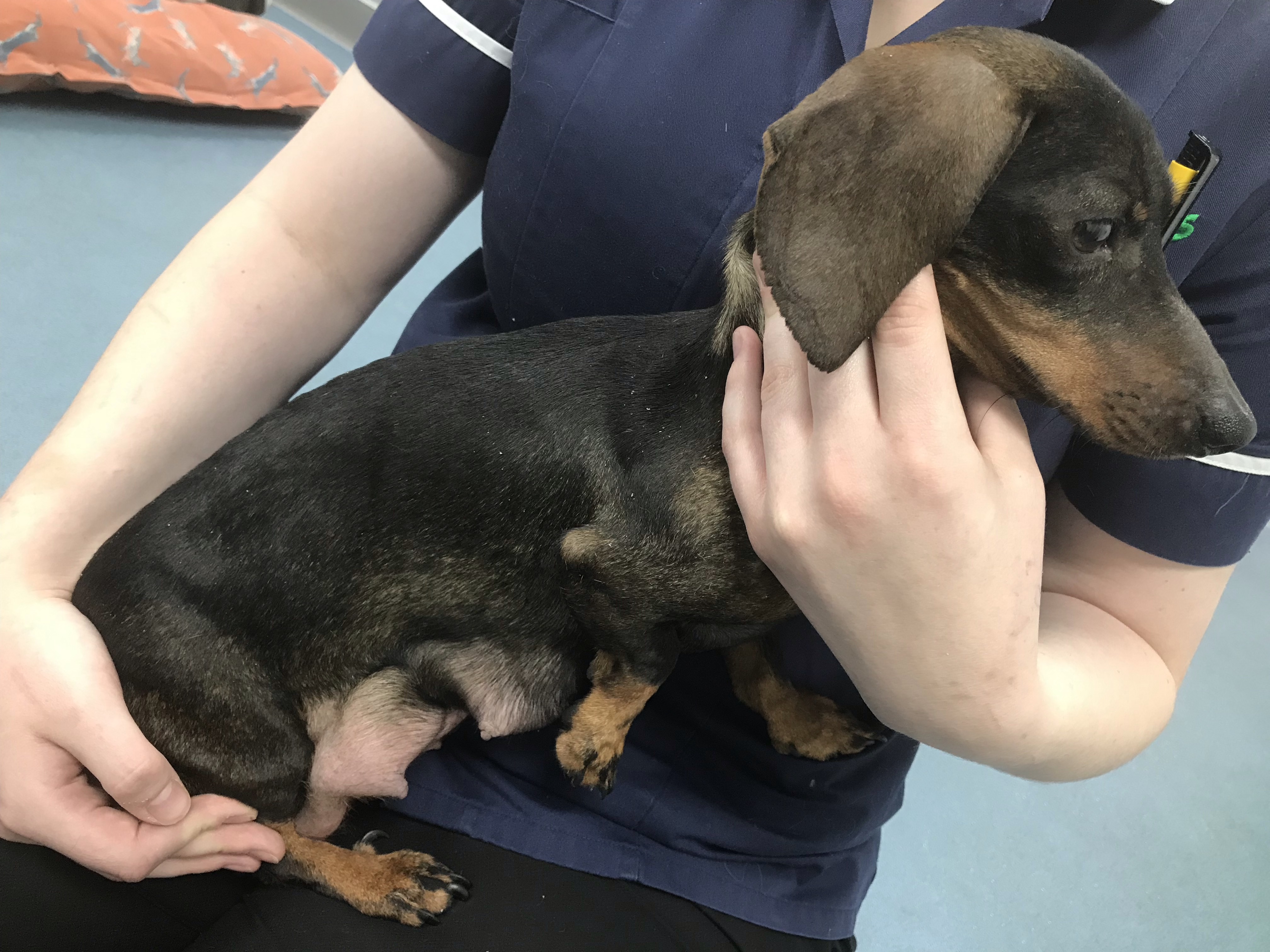 A breeding bitch was found dumped alone in an alley in the middle - still lactating milk for her absent puppies.