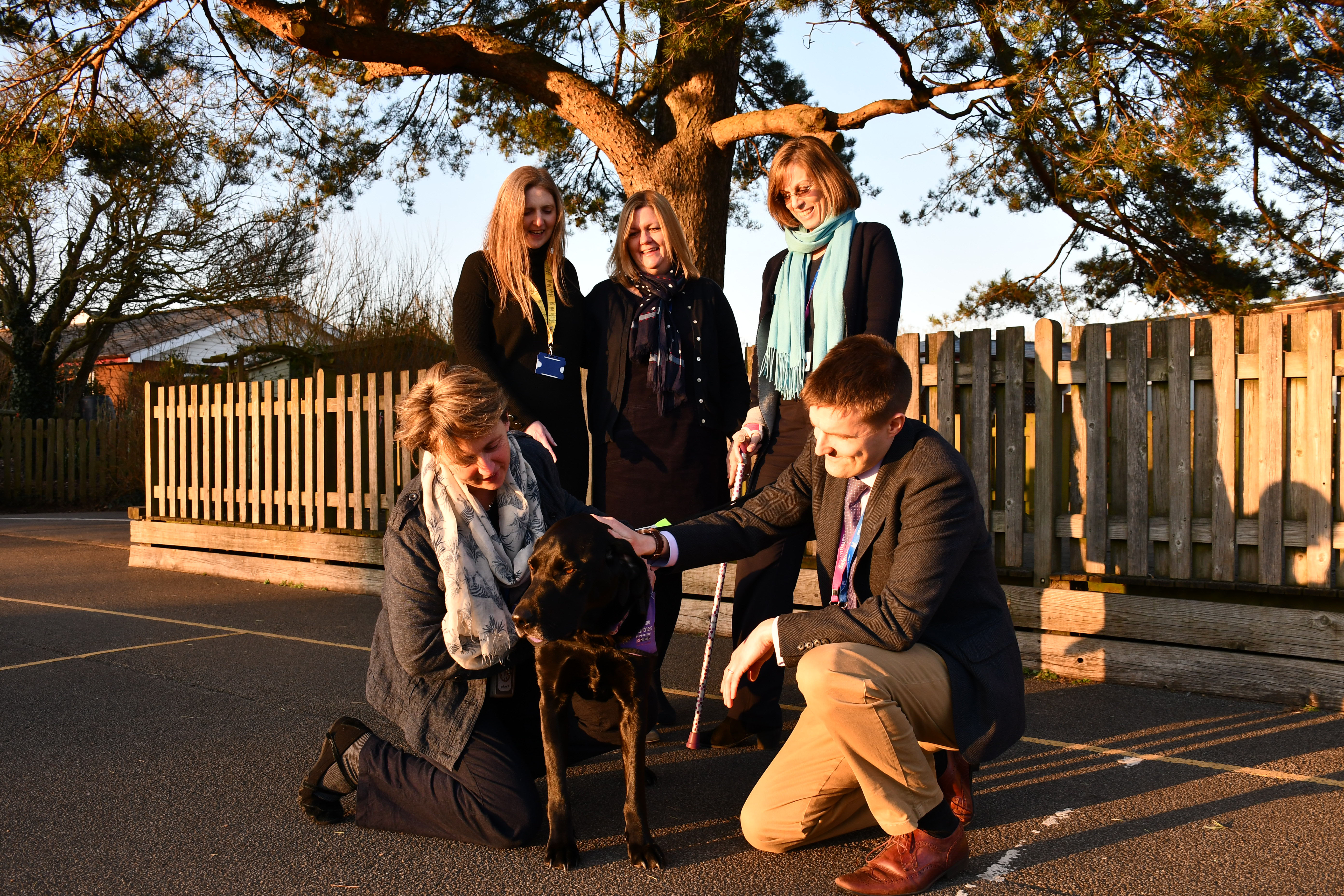 Fiona and Canine Partner Verlin with her colleagues. Verlin enables Fiona to do the job she loves.
