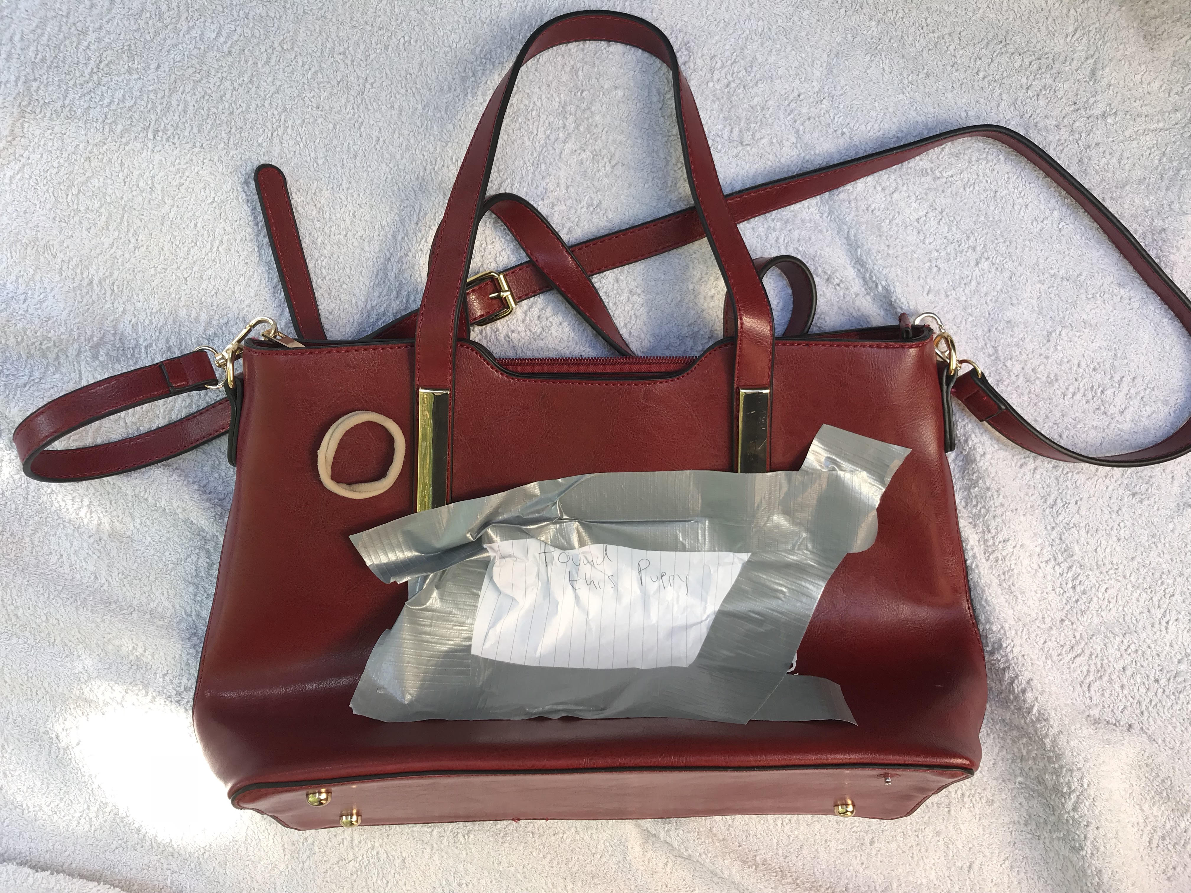 RSPCA Inspector Phil Norman, who is investigating, said: “We received a call from a woman who’d found a little puppy in a red handbag fastened to the door handle of a charity shop in The Broadway, Greenford.