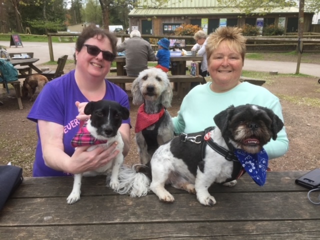 Jane and Michele were best friends. Here with their dogs Tictch, Sasha and Charlie. This is a very special photo for Jane, as Michele died. Jane adopted her friend's dog, Charlie, who is now as well as a beloved dog in his own right, a special link to her best friend.