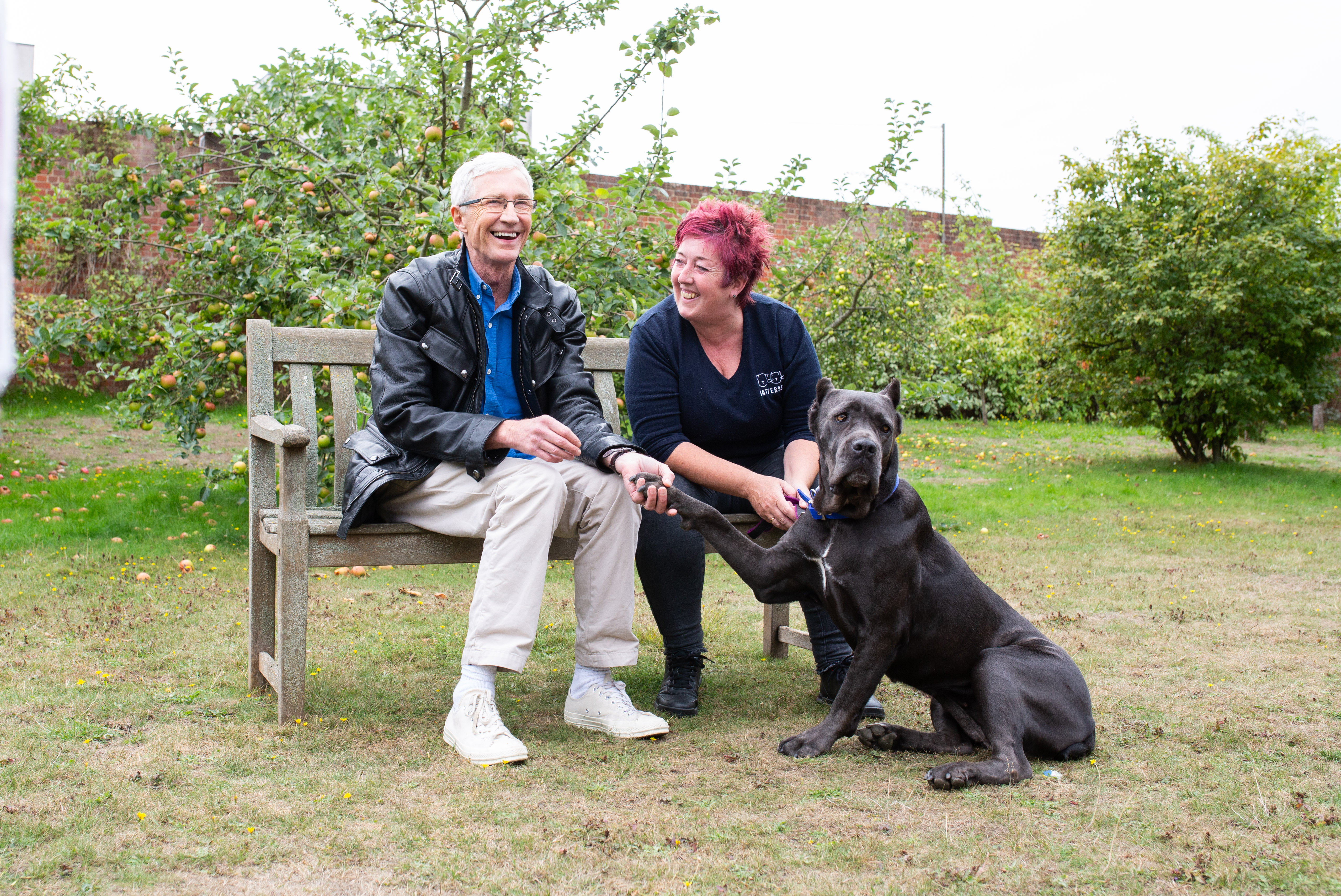 Paul O'Grady and Battersea's Head of Canine Welfare Ali Taylor with Sophie the Cane Corso.
