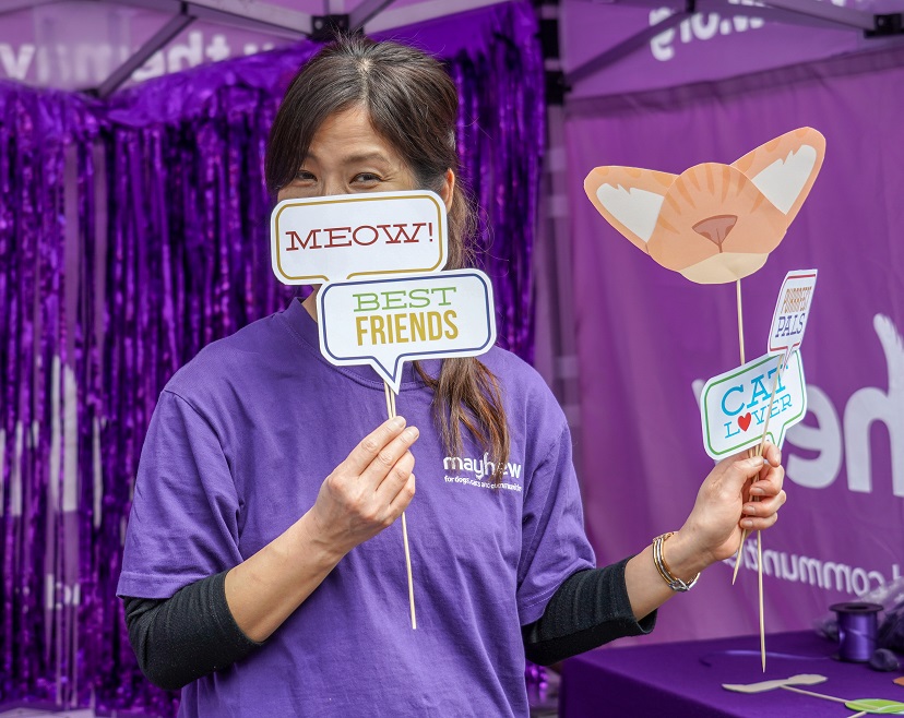 Mayhew volunteer at Mayhew's Selfie Stand.