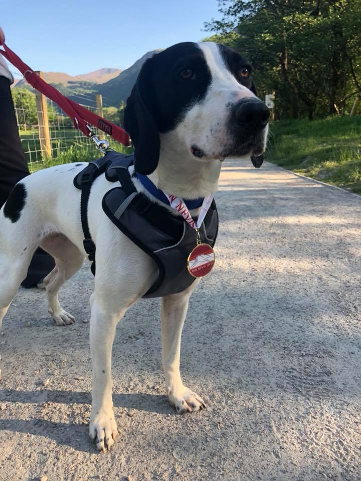 Pointer cross Snoopy will do anything to find a new home - including climbing 1,345m up Britain’s highest mountain.