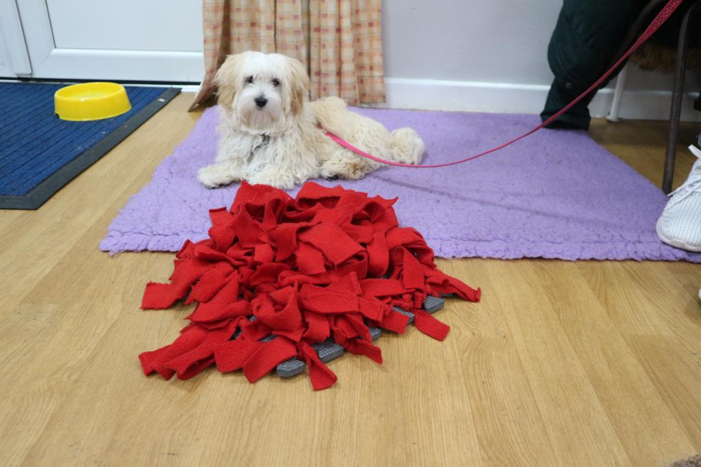 A snuffle mat is a useful distraction toy which most dogs really take to.