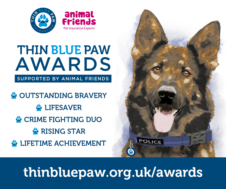 The Thin Blue Paw Foundation – a national welfare charity that supports and celebrates working and retired police dogs – is hosting its inaugural awards this year and is looking for inspirational tails of bravery and heart-warming stories of dogs who have dedicated their lives to keeping the public safe.