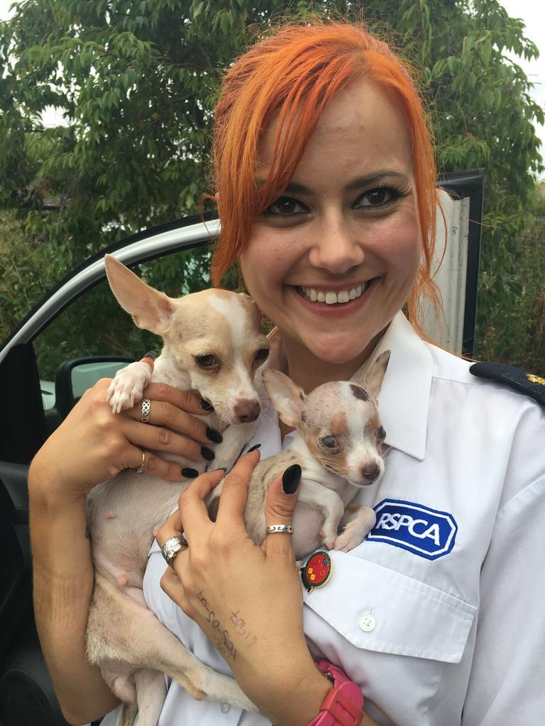 RSPCA inspector Marie Hammerton, with special needs Chihuahuas Peggy and Pip.
