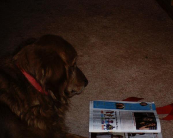 Here is a picture of my beautiful Golden Retriever reading a Gossip magazine. I wish he would read something more useful. :)