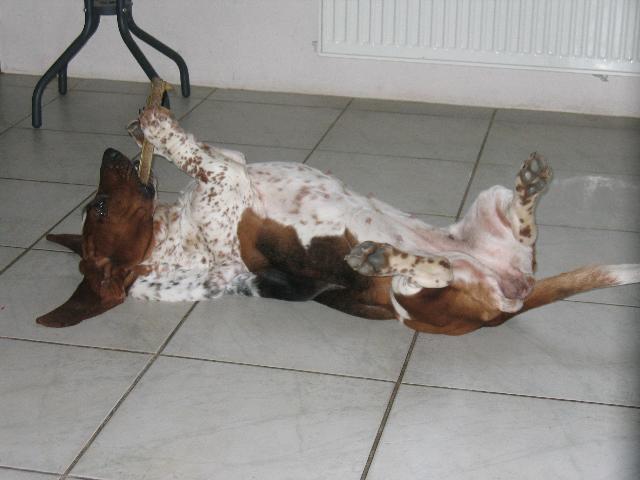 Sarah (or Saartje, dutch short-name) eats her chew bones like this, so she cannot bite her ears