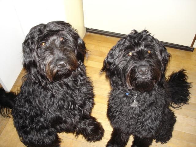 These girls are littermates. We've had Zuzu since a tiny pup and we got Gracie when she was 13 months. They are almost 1 1/2 in this pic. They are small, about 40 pounds. Dad is black std, mom is half yellow lab and half border collie, so not true labradoodles. The lab, border collie, and their mixed offspring have all been bred for temperment and are used in therapy work. We have two wonderful dogs!