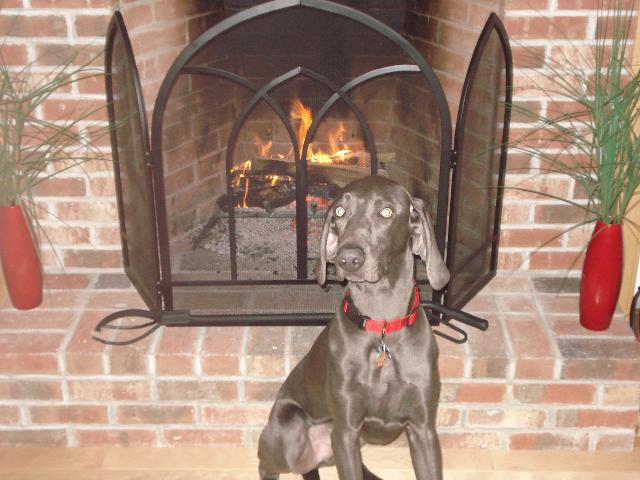We love our Weimaraner. Especially when he thinks he's as small as our Chihuahua and curls up on our laps.