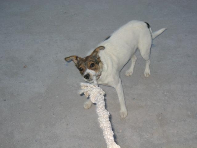 She is more of a mix of dogs than anything, though we think she has definately got a strong gene of JACK RUSSEL TERRIER in her. Thanks