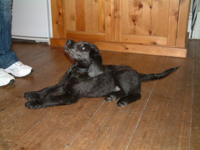 Sparky is an angel - so good around the house and house trained in 3 days! He is enjoying his walks and is 13 weeks old and 11 kg (20/6/07).