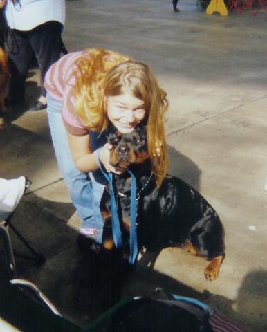 This is my baby. We were at a show in Raleigh, North Carolina in this picture. On that particular day we won 3rd place in Obedience Novix A.
