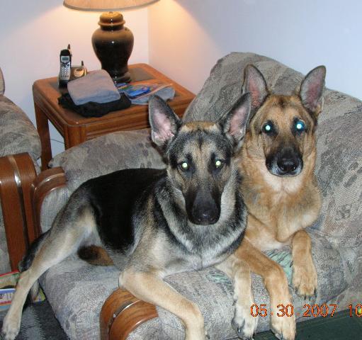 This is a picture of our two wonderful male German Shepherds. Gunner is 13 months old and Niko is 5 years old- they are a huge part of our family and we love them so much! These boys are smart, lovable, playful, and very loyal- we would never own any other dog breed!
