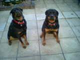 here is a picture of two of our three rotties jake and chloe. Sadly we lost jake to cancer at 6yrs and 7 months