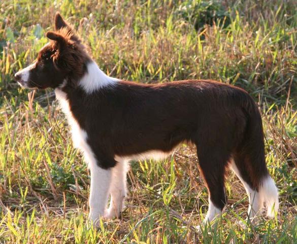 Bomber is our Chocolate and white border collie he is the only Border collie that doesn't like to work but will work if he absoultly has to although pauses to give dirty looks
