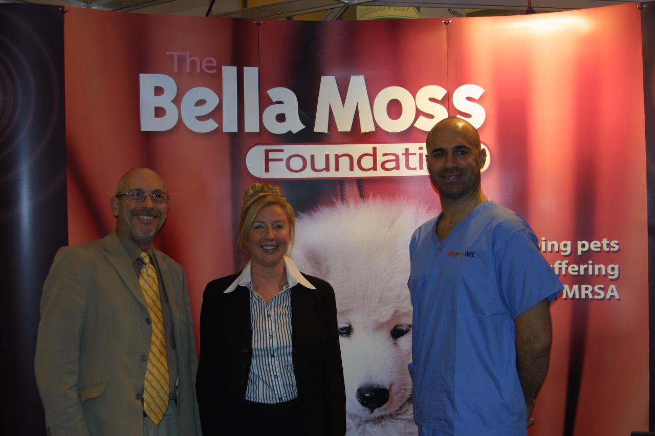 Jill Moss and Marc Abraham at the Bella Moss Foundation stand at Crufts.