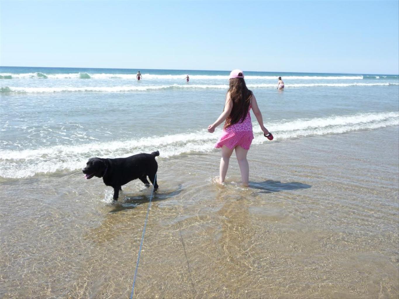Buddy cooling off in the sea.