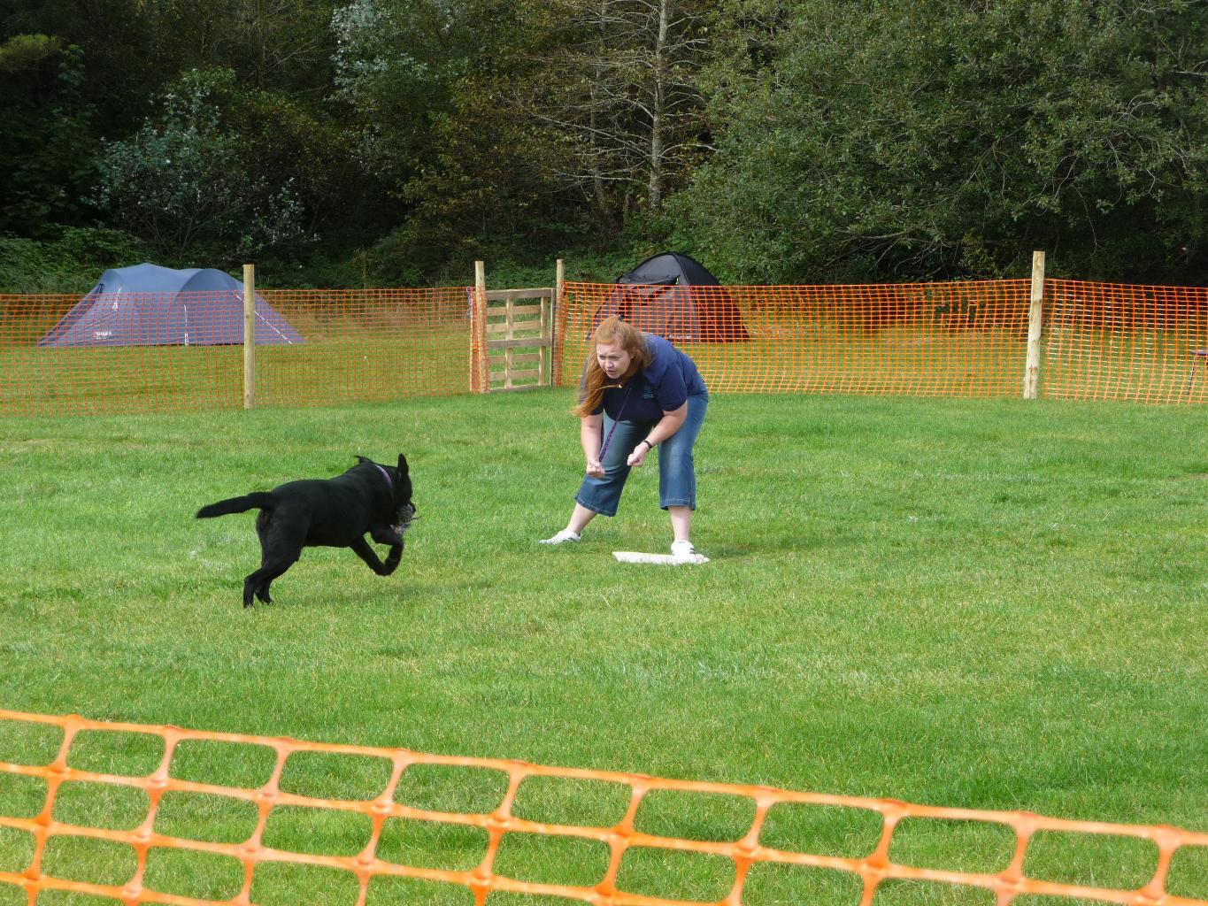 Buddy and Julie in action in the timed fetch game - how many retrieves can you manage in one minute?