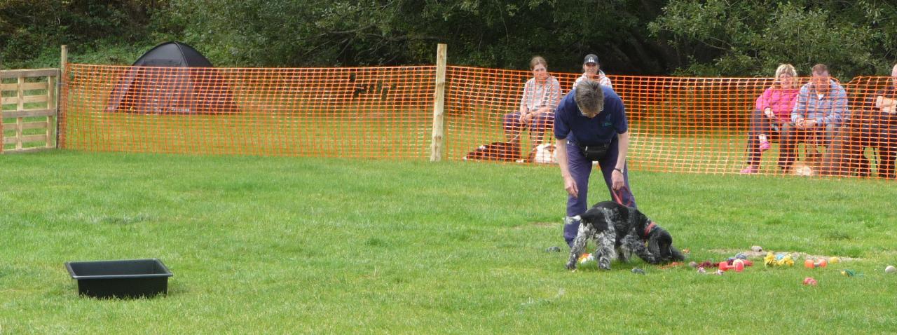 Save on the housework and teach your dog to tidy up! The dog had to pick up toys and deposit them in the big black container.