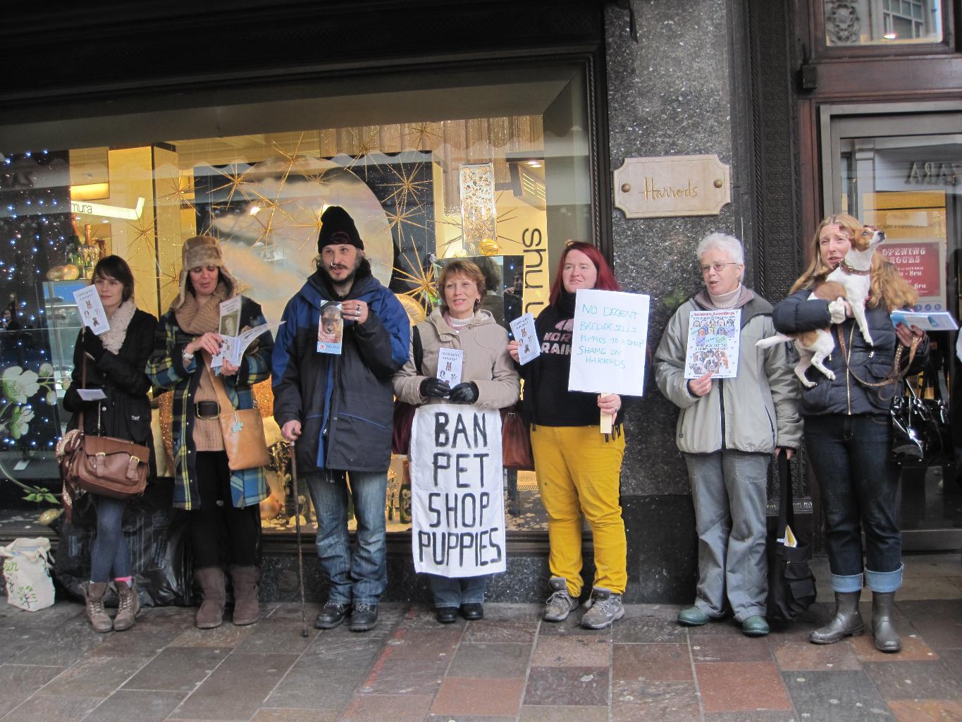 Campaigners from the anti puppy farming groups Puppy Love and SPEC and from the rescue site Dogpages on a peaceful protest at Harrods.