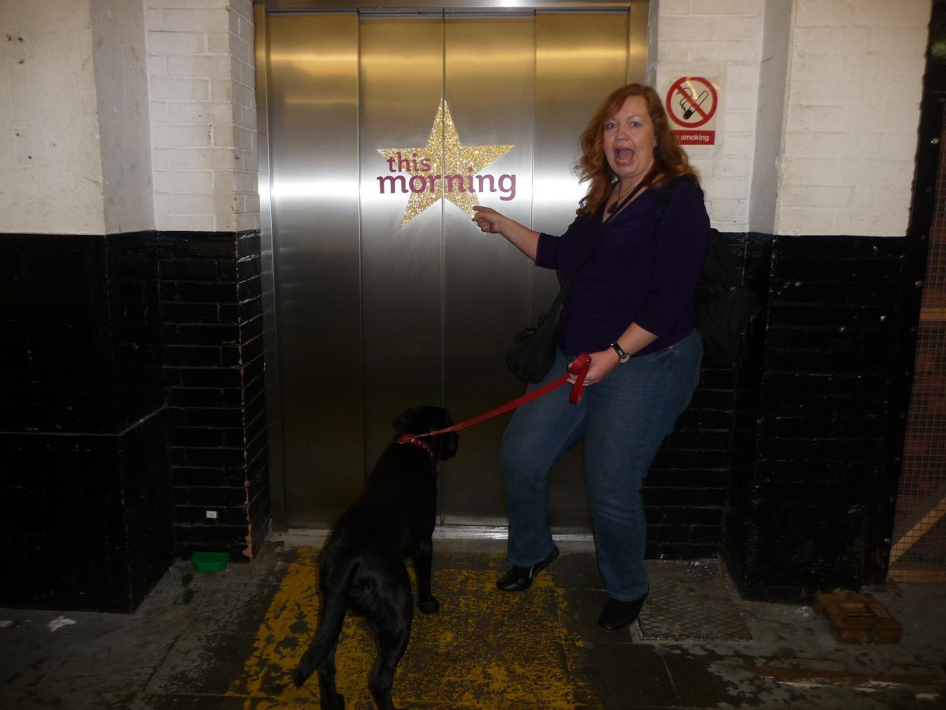 Julie & Buddy waiting for the This Morning lift, during the Dog for the Dales competition to find a dog to feature in an episode of Emmerdale.