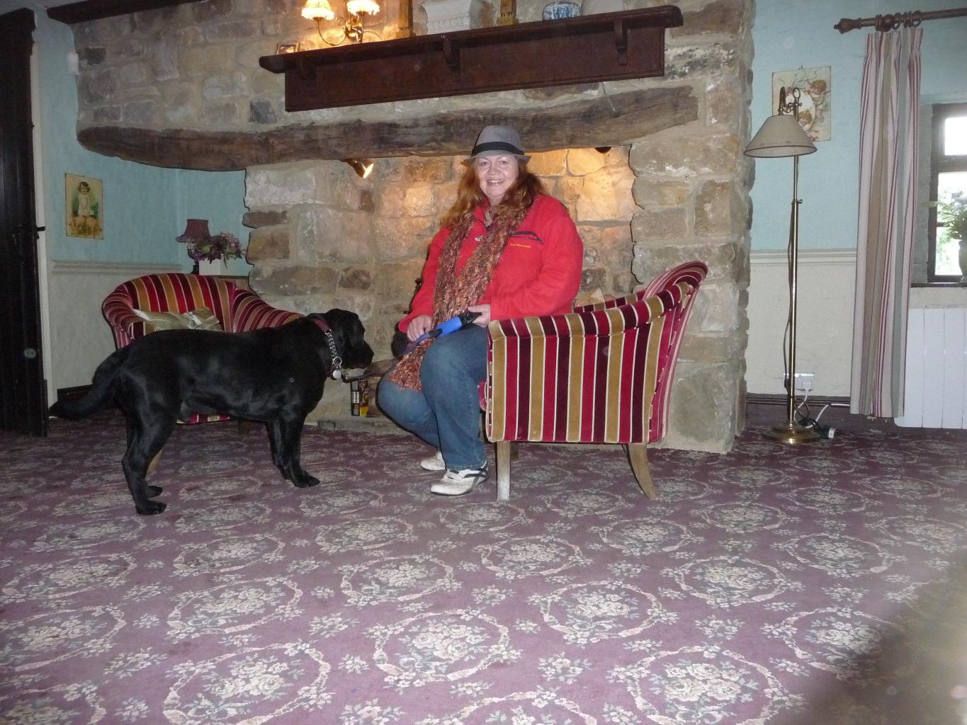 Julie and Buddy in the Bed and Breakfast at Emmerdal village during the Dog for the Dales competition.
