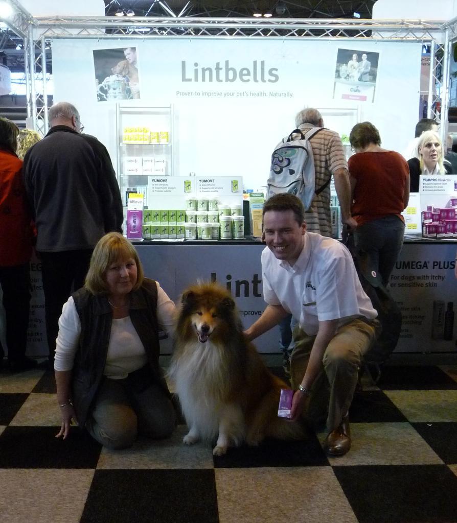 John Howie with Julie Growcott and Ted publicising Yumpro Bio Activ on the Lintbells stand.