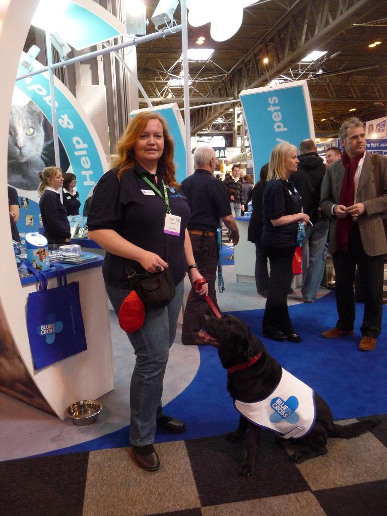 Julie and Buddy on The Blue Cross stand at Crufts 2012.