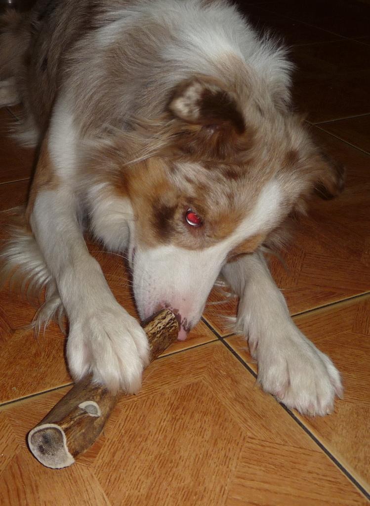 "What's in the middle of this then?" Rusty explores his Stagbar, a chew for dogs made from stag antlers.