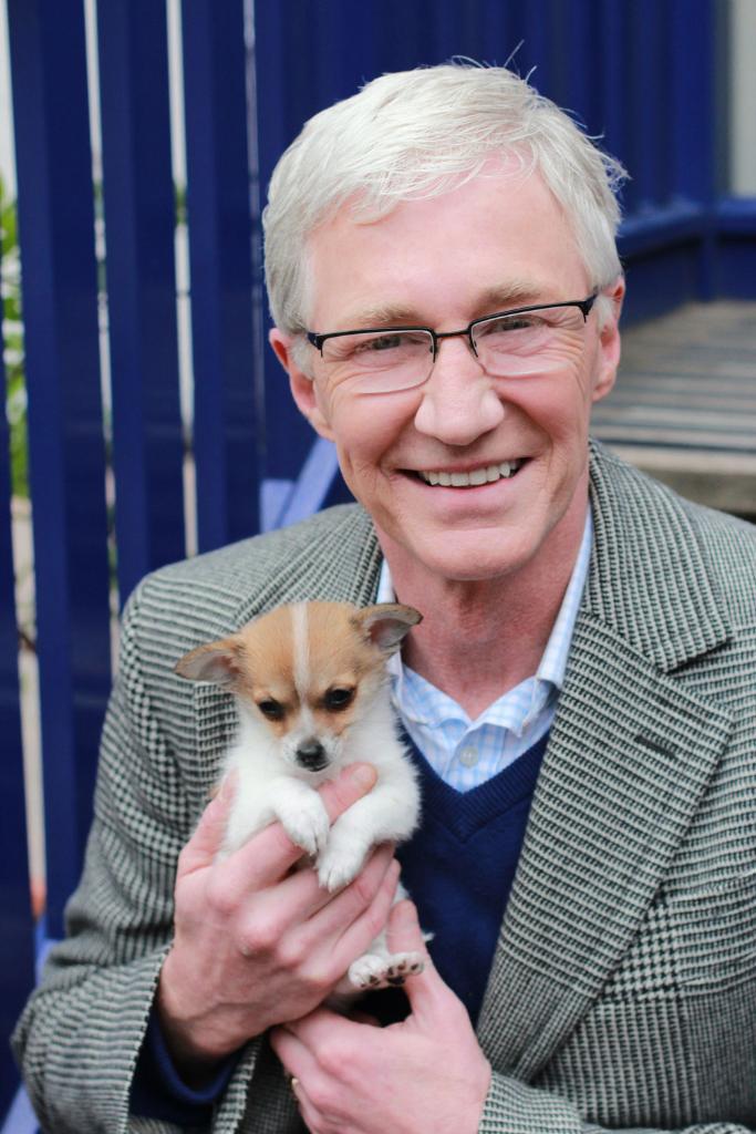 Paul O'Grady and the puppy he adopted from Battersea Dogs and Cats Home.
