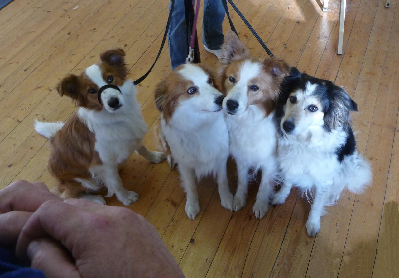 Four canine members of the Roann's Dog Therapy Team wait for a treat.