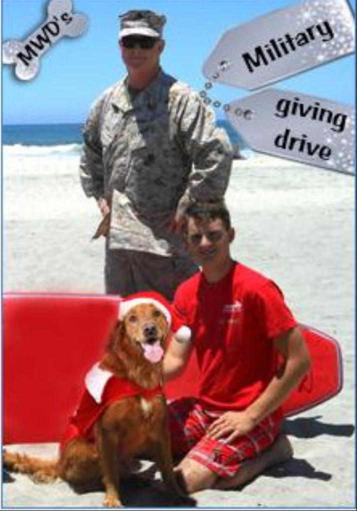 Surf dog Ricochet leads a military giving drive to benefit soldiers with PTSD, TBI and other combat injuries.