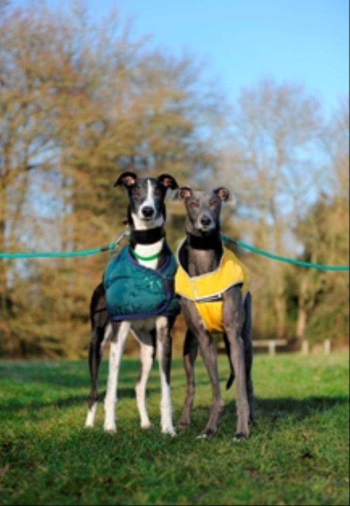 Dale and Chloe enjoy a walk. They met at Battersea and are looking for a home together.
