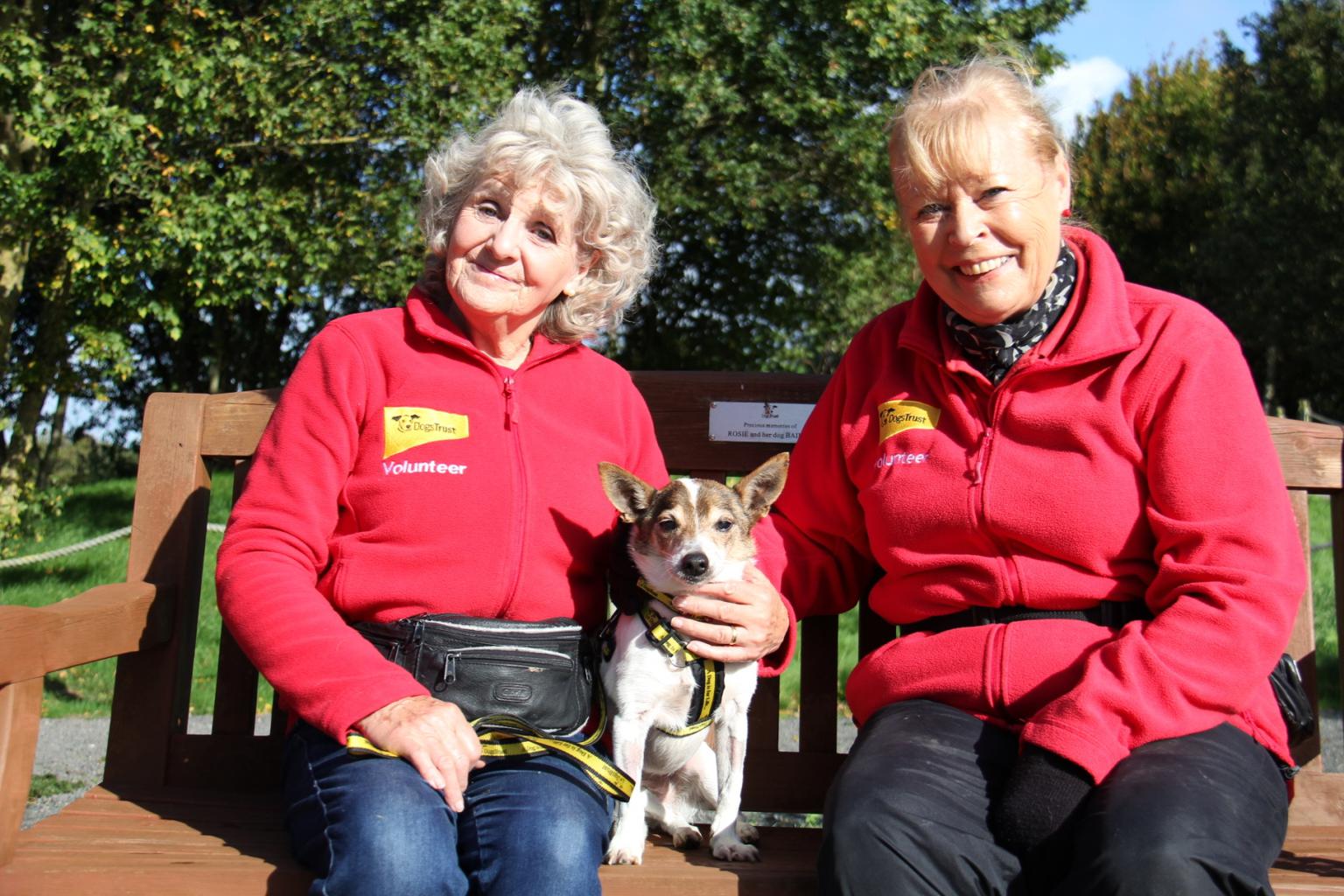Bobby enjoys getting out and about with volunteers Audrey Welson and Avril Randal.