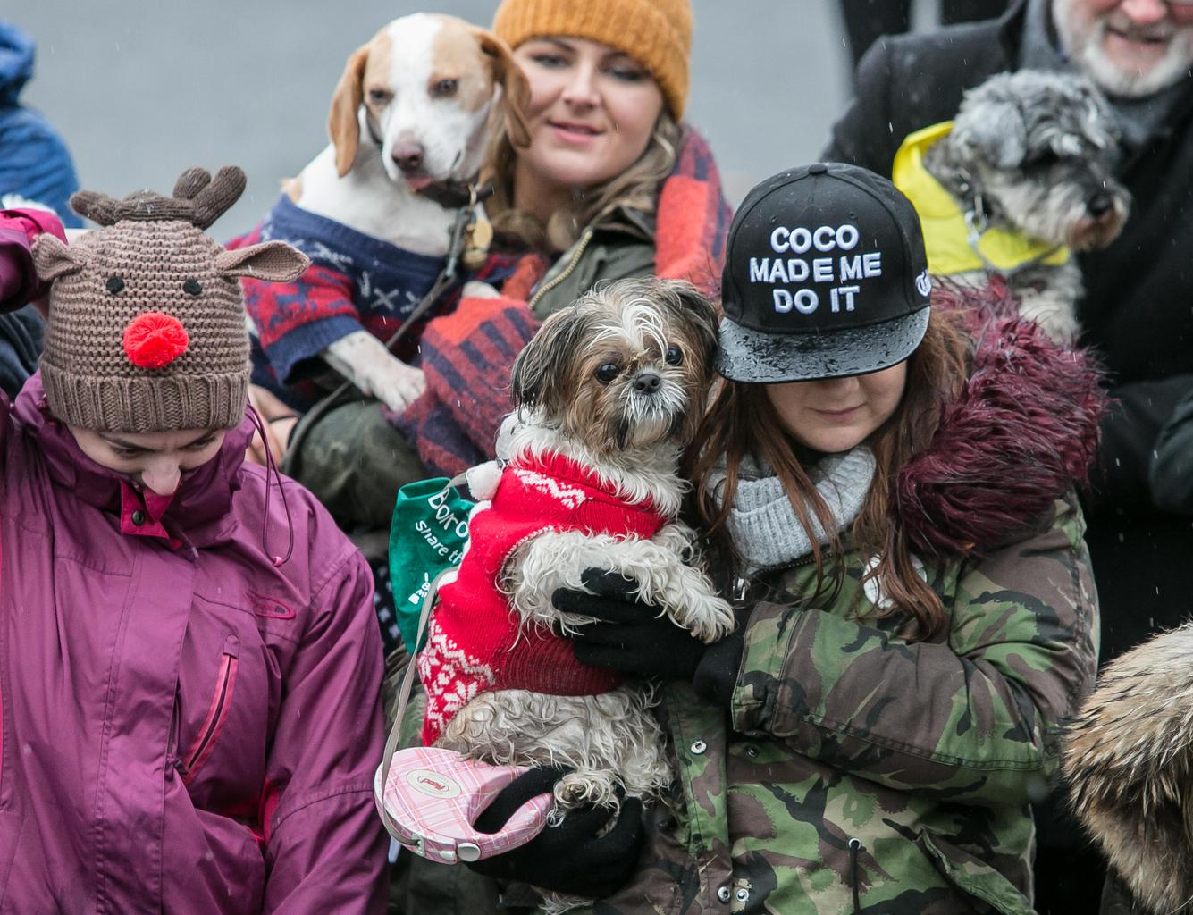 More than 300 dogs brave the snow wearing festive knits to support Save the Children’s Christmas Jumper Day