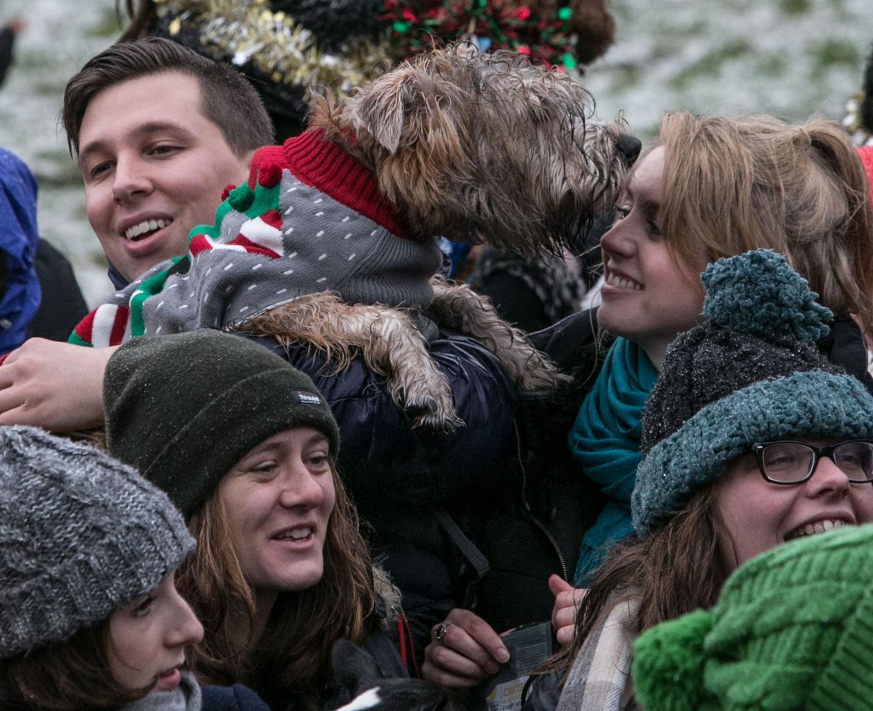 More than 300 dogs brave the snow wearing festive knits to support Save the Children’s Christmas Jumper Day