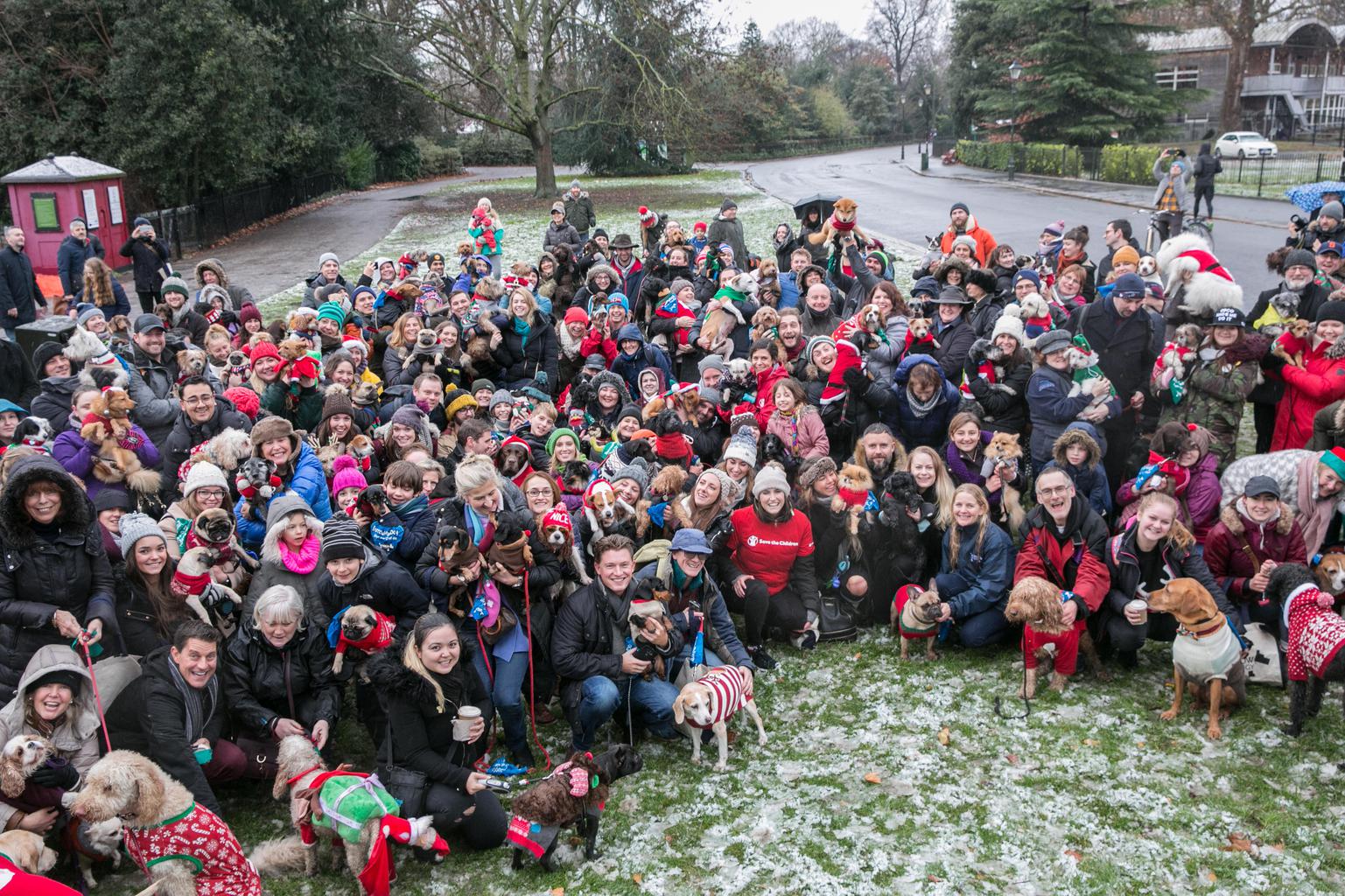More than 300 dogs brave the snow wearing festive knits to support Save the Children’s Christmas Jumper Day