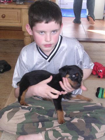 heres harley at 8 weeks old, not long back from the vets.
