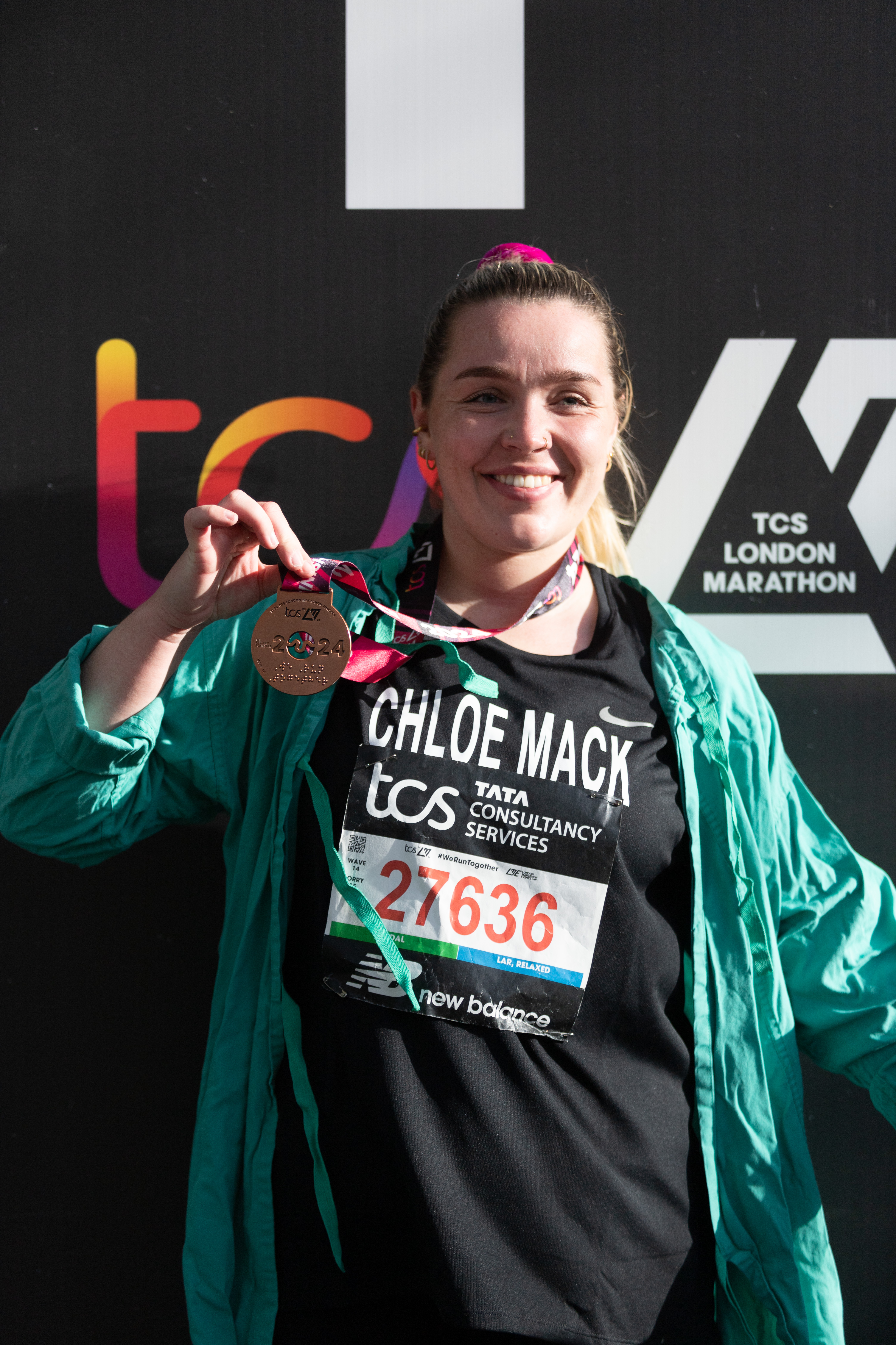PDSA Vet Nurse Chloe Mackintosh with her London Marathon 2024 medal.