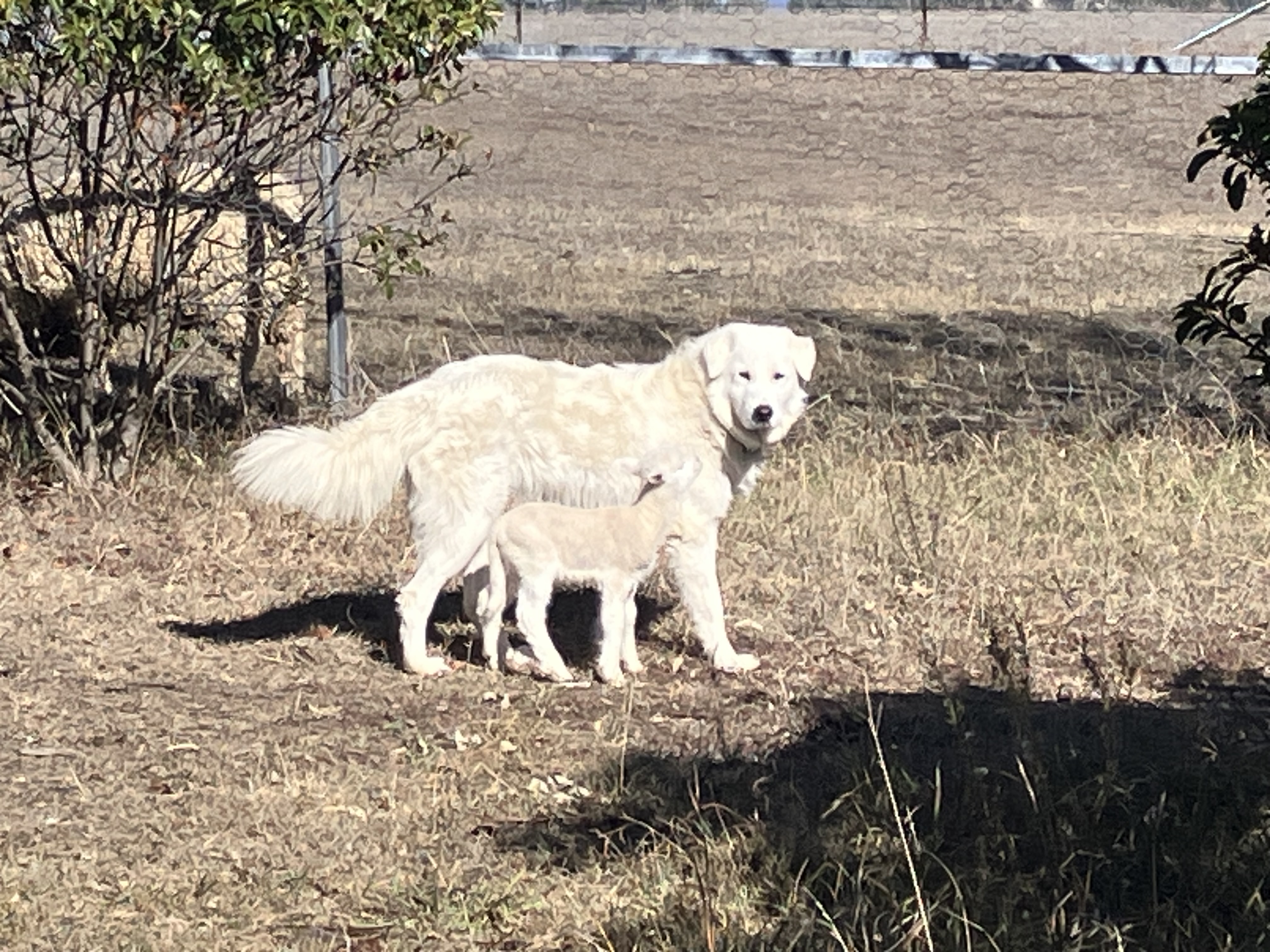 Nala stays close to her canine companions.