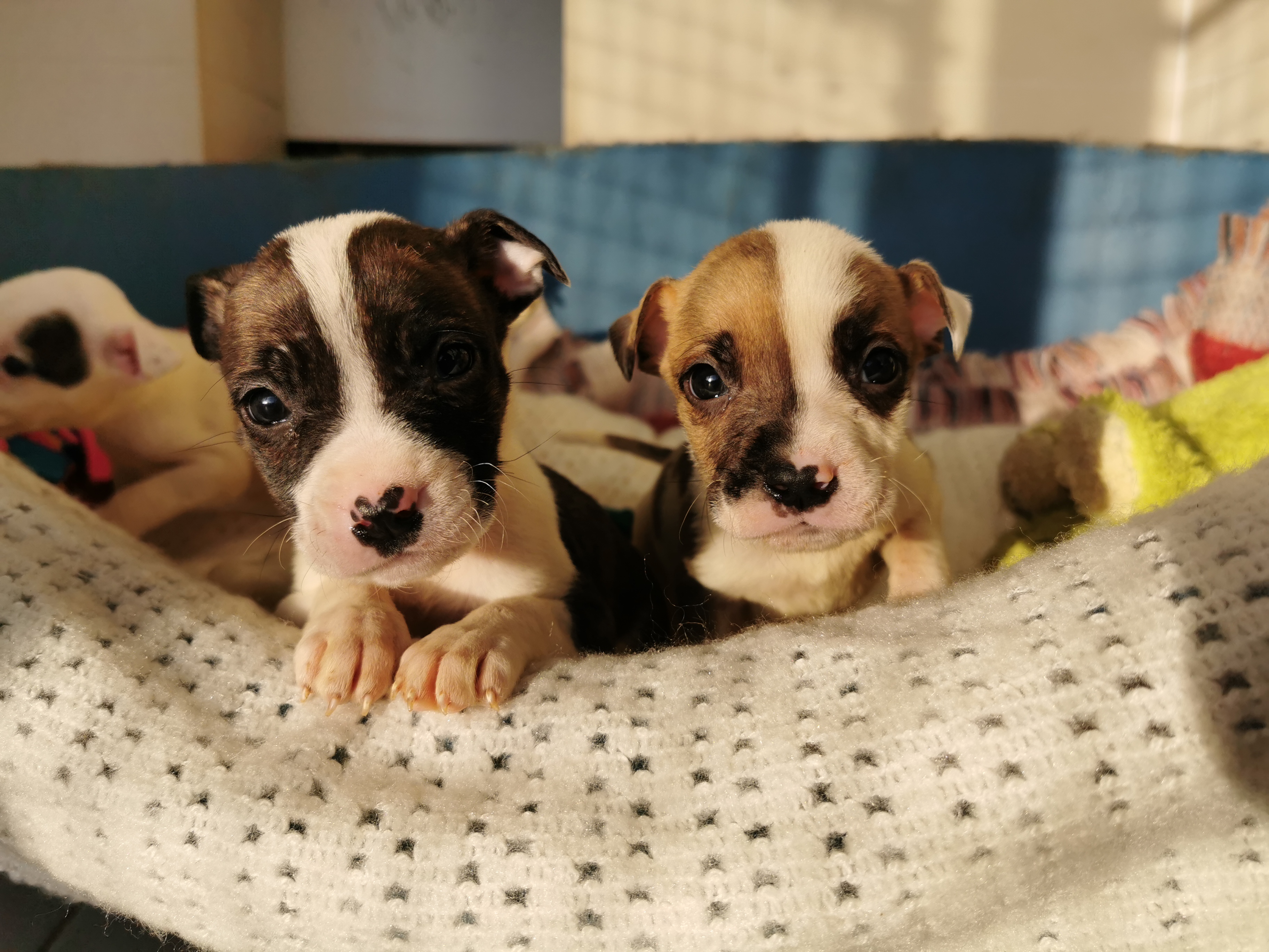 Six-week-old Staffie cross pups Jasmine, Jack, Jonny, and Jenson arrived at the RSPCA’s Millbrook Animal Centre, in Chobham, Surrey, on 11 December.