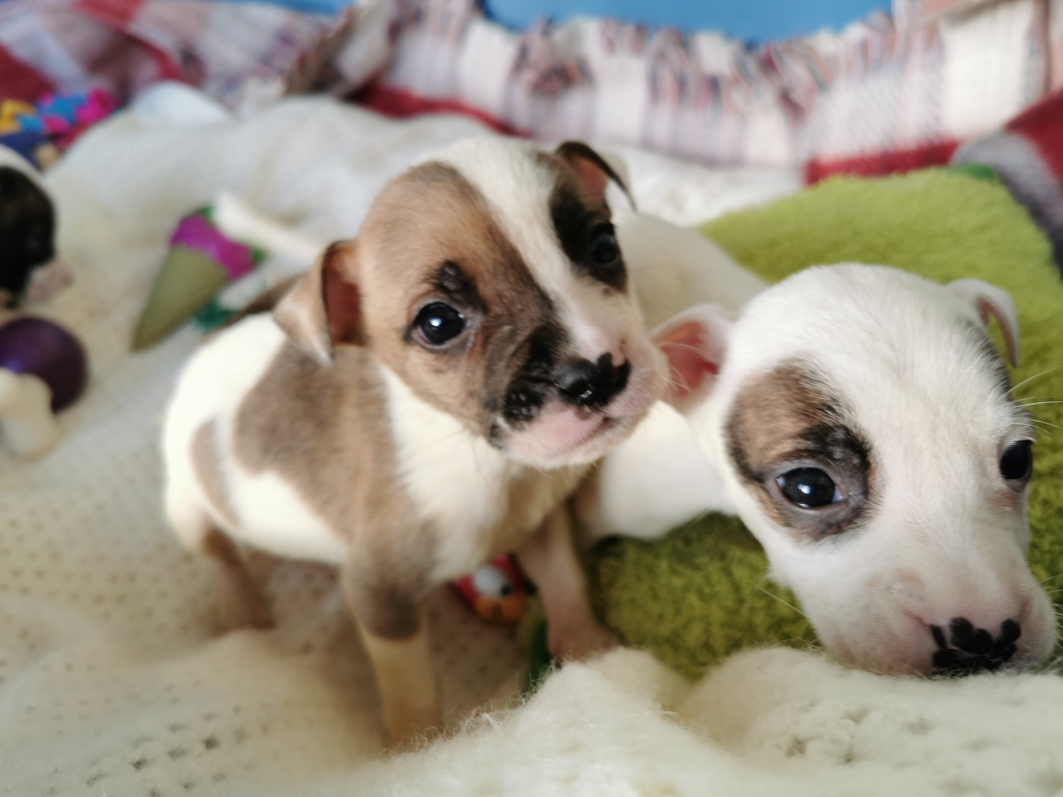 Six-week-old Staffie cross pups Jasmine, Jack, Jonny, and Jenson arrived at the RSPCA’s Millbrook Animal Centre, in Chobham, Surrey, on 11 December.