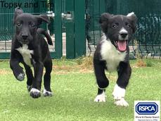 Topsy and Tim are Springer Spaniel/Collie crosses, are 13 weeks old and can live with a cat.