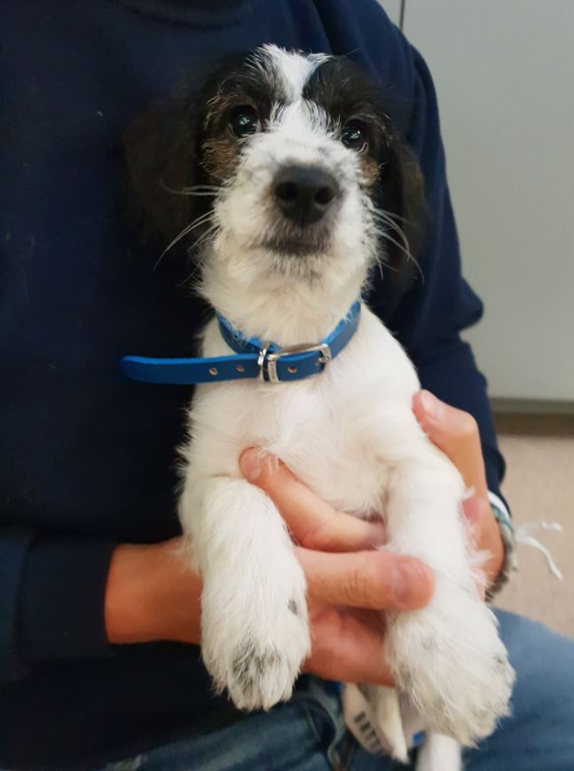 Truffle, a 12-week-old Jack Russell Terrier, who was brought into Battersea in December 2018. His owner had bought him after seeing an internet ad and met the seller at a train station, where the young dog was handed over wrapped in a towel.