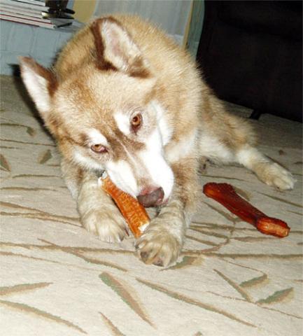 Logan is a trip! He loves to run circles and play with his brother Jericho (his Sibe brother). He has minor seperation anxiety, but if left with enough toys, he does just fine.