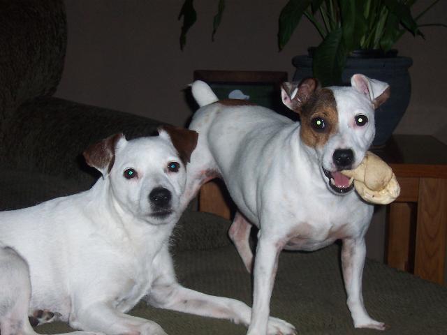 They are brother & sister, a litter apart. (ages 9 & 8) Good pups!